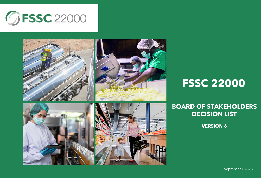 Segundo o anúncio oficial da FSSC Foundation, a versão 7 está em desenvolvimento, motivada por incorporar a nova série ISO 22002-x:2025 de programas pré-requisito (PRPs).