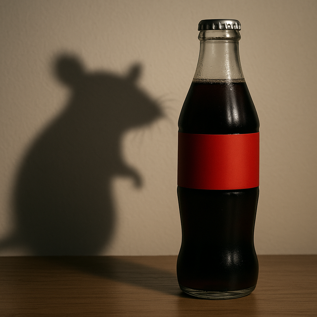 Imagem criada por inteligência artificial – A sombra do rato sobre a garrafa representa, de forma simbólica, o caso em questão.