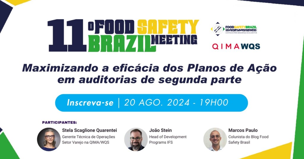 Nós, em parceria com a QIMA/WQS, temos o prazer de convidá-lo para o 11º Food Safety Meeting! Nesta edição, vamos abordar um tema crucial para a segurança de alimentos: “Maximizando a eficácia dos Planos de Ação em auditorias de segunda parte”.